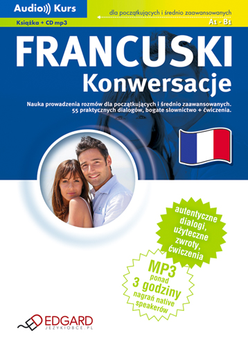 Francuski [Dokument elektroniczny] : konwersacje : dla początkujących i średnio zaawansowanych. - Warszawa : Edgard, cop. 2010. - 1 dysk optyczny (CD) (ok. 200 min) : digital, stereo ; 12 cm + książka: 125 s. ; 19 cm.